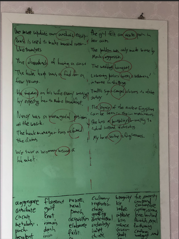 - 그리고 방에 걸어져 있는 커다란 칠판에 그 문장들을 썼습니다. (당연히 아직 외운 것은 아닙니다.)